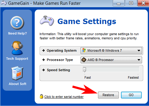 Untungnya, jika ini atau hal lain yang negatif terjadi pada mesin Anda, ada tombol restore pada GameGain. Cukup menjalankan program ini lagi dan klik tombol Restore.
